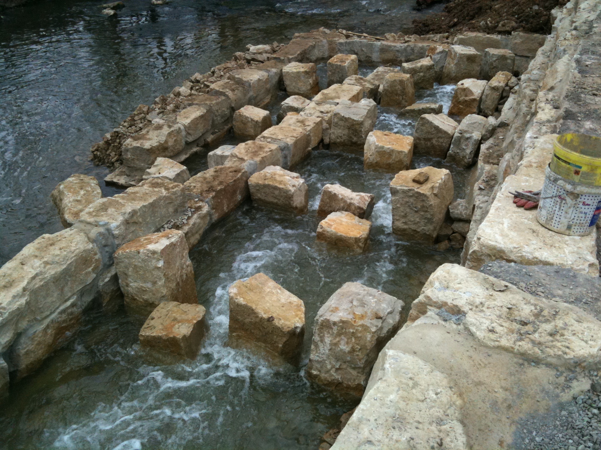 Construction d'une passe à poissons sous le viaduc de l'autoroute A1.